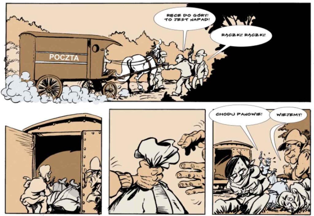 - Rabusie dyliżansów – komiks na zamówienie Biura Komunikacji Społecznej KGP – w ramach stulecia odzyskania niepodległości;