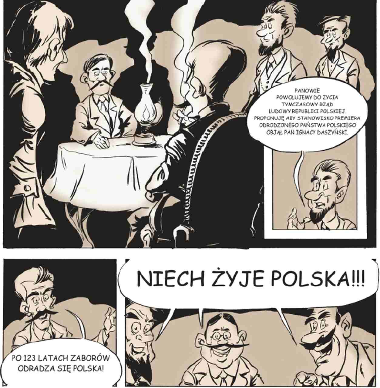 - Tymczasem – zlecenie na komiks przyszło ze strony Ministerstwa Spraw Zagranicznych RP (z okazji polskiej prezydencji w UE, 2011);
